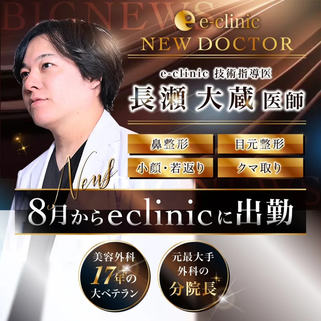 長瀬医師は、美容外科における豊富な経験と幅広い症例を持つドクターで、その丁寧で的確な施術・指導には私たちeクリニックとしても大きな信頼を寄せております。